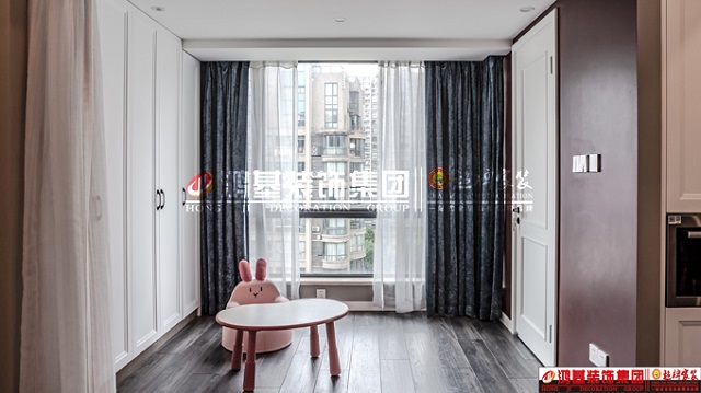 圖6.亮點(diǎn):女兒房的配色柔和了空間,增添了溫度,藍(lán)綠色與粉色撞色,看起來(lái)更童趣活潑,為“家”溫柔了時(shí)光,在喧鬧的都市中尋覓一絲可愛(ài)。